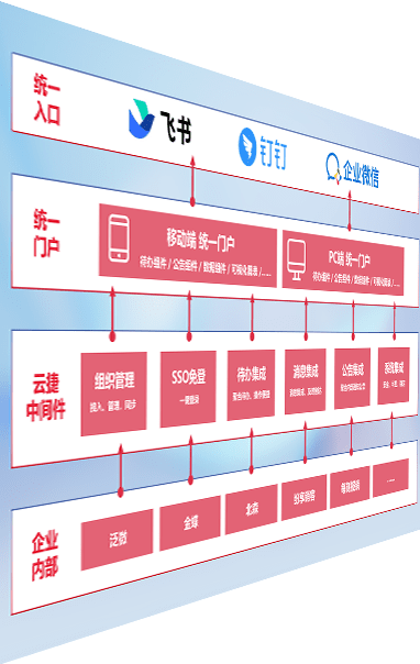 对协作平台提供支持服务,,,支持企业应用与协作平台对接,,,包含组织同步、、、消息集成、、、、待办集成等。。。。支持目前主流的协作平台:钉钉、、、、企微和飞书。。