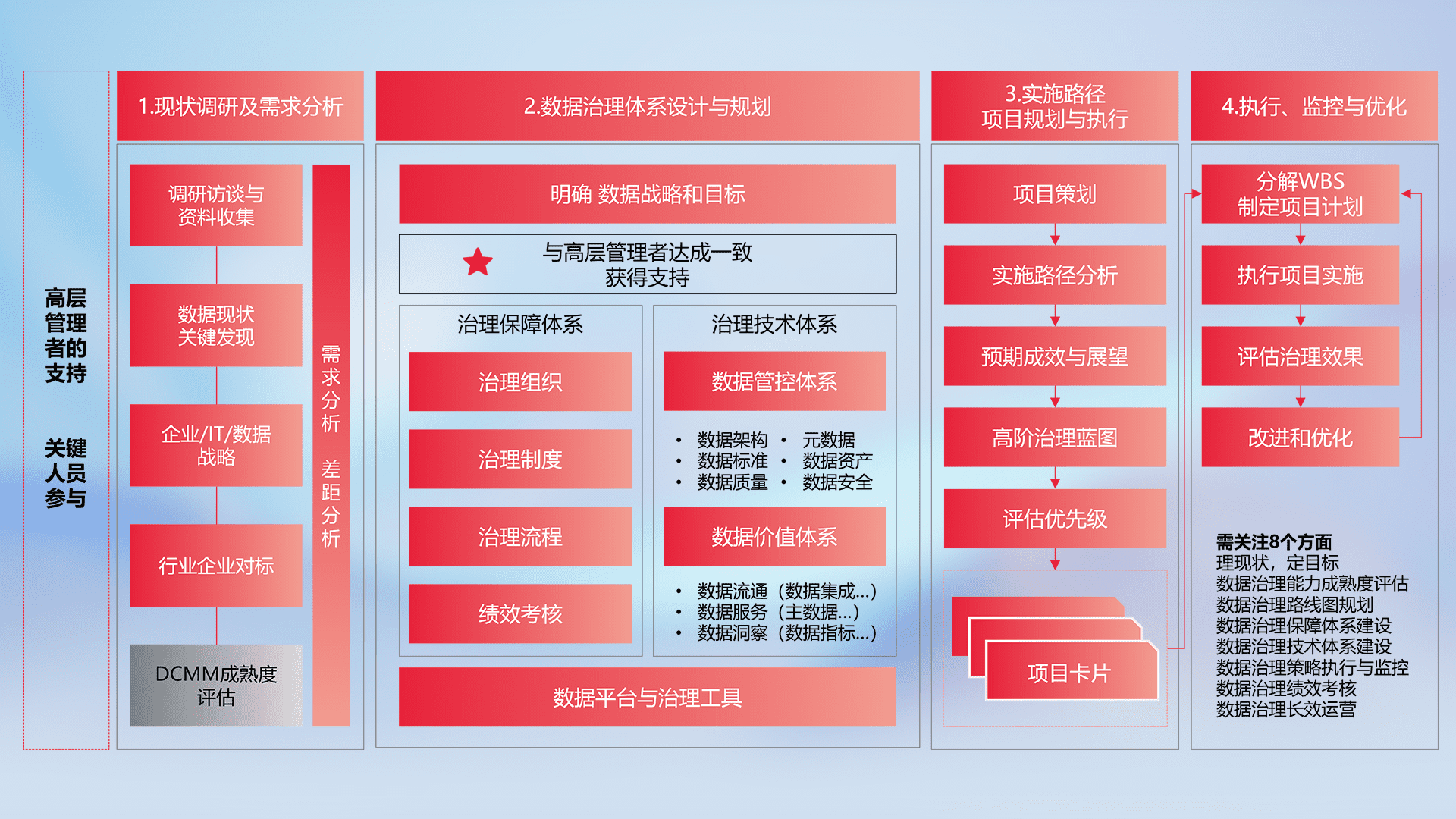 制定并执行统一的数据标准,,,,规范数据定义和格式,,消除冗余和不一致性,,,实现跨部门和跨系统的数据一致性,,,为企业提供标准化的数据基础。。。